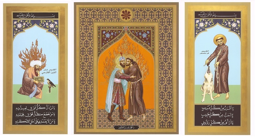 In 1219 St. Francis and Brother Illuminato accompanied the armies of western Europe to Damietta, Egypt, during the Fifth Crusade. His desire was to speak peacefully with Muslim people about Christianity, even if it mean dying as a martyr. He tried to stop the Crusaders from attacking the Muslims at the Battle of Damietta, but failed. After the defeat of the western armies, he crossed the battle line with Brother Illuminato, was arrested and beaten by Arab soldiers, and eventually was taken to the sultan, Malek al-Kamil.