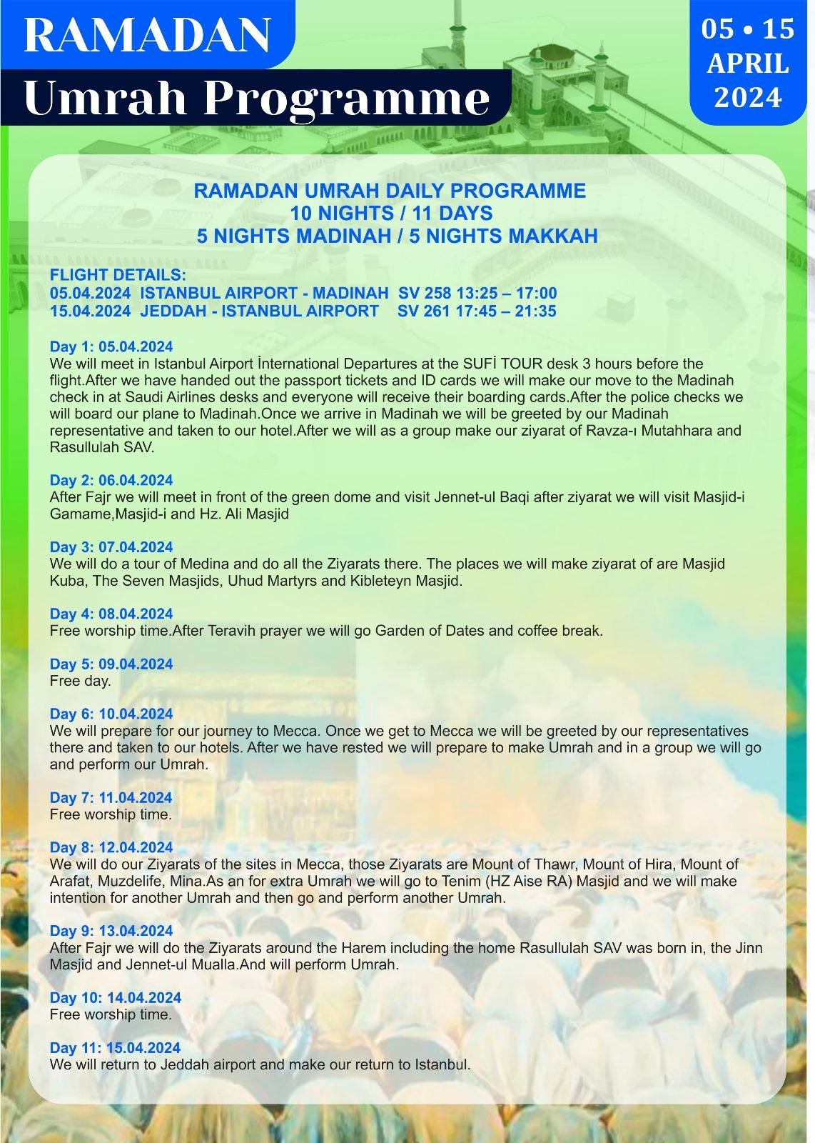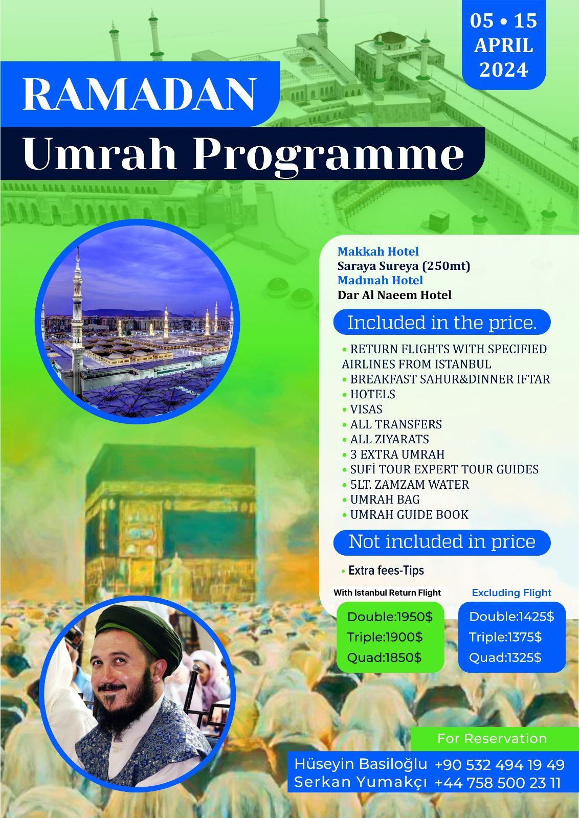 Again this year Sheikh Mehmed Nazim goes for Umrah with a group, the first 5 days, which are the last 5 days of Ramadan, InshaAllah, we’ll be in Medina, on Eid day we intend to arrive Mecca, and there we’ll make Umrah, see Programm.