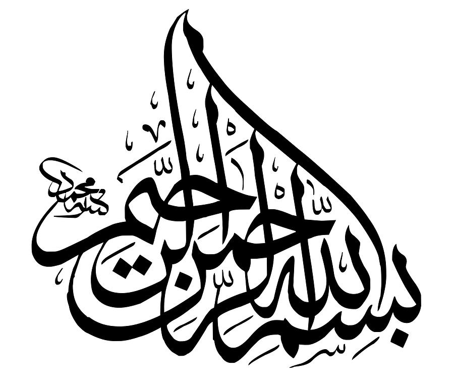 Note: The words In the Name of God, the Compassionate, the Merciful occur midway through Surat al-Naml (Q.27-3o), quoting the letter from Solomon to the Queen of Sheba. Since the formula is in the middle of the Chapter and part of its narrative rather than a prefix at the beginning, there is no dispute as to its being part of the Qurán. Whether the bismillah formulas prefixing every Chapter of the Qur’án except the Surat al-Tawba are actual verses of those Chapters, or additions to them meant to introduce them, is a subject of debate among Muslim scholars.