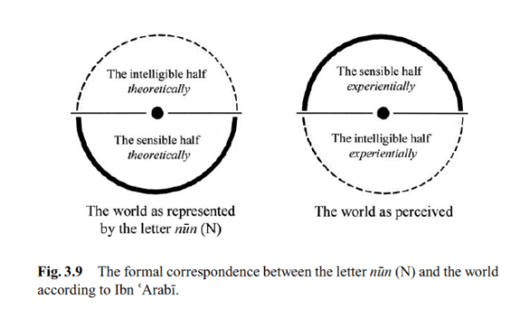 Ibn ‘Arabï does not explain the logic of this diagram’s asymmetrical composition. Despite the overall circular form, there seems to be a sense of vertical hierarchy in the composition, suggesting a vertical reading of the diagram.