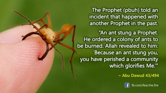 Mercy and compassion towards other living beings, no matter their size and shape, is one of the foundations of Islam. In one narration, Prophet Mohammed censured some of his companions for acts of cruelty towards birds’ and ants’ homes.