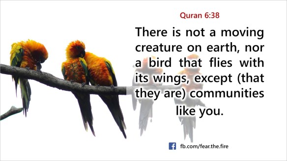 ‘And there is no creature on [or within] the Earth or bird that flies with its wings except [that they are] communities like you. We have not neglected in the Register a thing. Then unto their Lord they will be gathered.” (Quran 6:38)