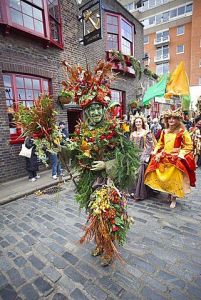 In some places they would also carry a miniature representation of the Maypole and a doll representing the May Queen, both of which ultimately represented the divine forces at work in the trees and thorn bushes. (Sometimes the main Maypole was decorated with women’s clothes and/or a similar doll was hung on the Maypole, making the connection clearer.) The idea here was one of exchange: The youths were mediators conferring through the flowers, boughs, and dolls divine blessings, good luck, and protection on households and their crops and animals, and they expected to be rewarded with gifts in return for their good will and services, much as in Halloween’s trick-or-treat tradition. The gifts were rather nominal and symbolic and included eggs, tea, bacon, sausage, cream, cakes, and money, but it was still thought that the generosity of the gift to the youths (and ultimately to the divinities) would influence the magnitude of the blessing conferred. In this way the entire village, house-by-house in a private, family-specific manner, came under divine blessing and protection.