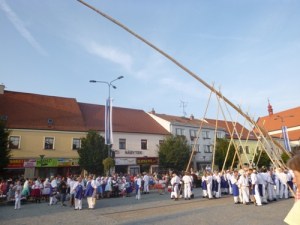 The young men go out into the village in the meinacht and into the forest in search of flowering branches and bring them to the window of their beloved in the village. The pole is placed in the middle of the village and crowned with a branch or wreath of the flowering hawthorn. The young men of the community must compete in a running or riding competition who is the new honey king and then try to climb into the pole to get the meat crown (sometimes the pole is smeared with soap).