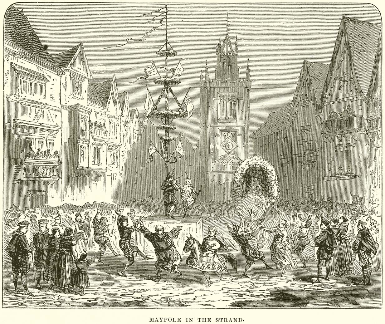 Representation of May Day in a larger English town, prior to the inauthentic late 19th-century plait dance.