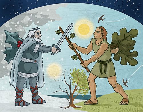 Winter and summer compete in such a perpetual battle for the spring bride. A battle that will take place at the beginning of the summer for the Celts: 1 May. But neither can win definitively. At the turning of the year halves they will be forced to hand over the goddess to the new king, king summer, or king winter or else the king of the outgoing and the king of the rising year.