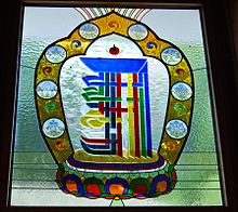 Kālacakra Tenfold Powerful symbol in stained glass