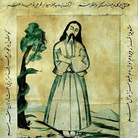 There are several engravings showing the Bektachis, and in particular the famous Kaygusuz Abdal (between 1380 and 1410), in this posture which symbolizes respect and expectation.