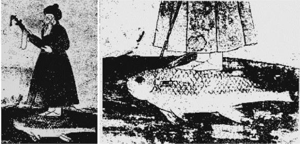 In western Asia, Moslem or Hindu symbolic art shows the Saint, Al Khizr, dressed in a green coat being carried on top of the water by a fish which conveys him over the river of life.