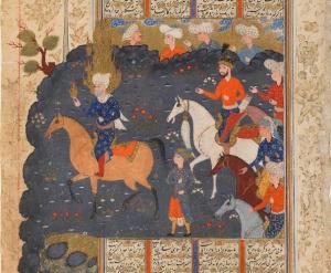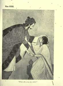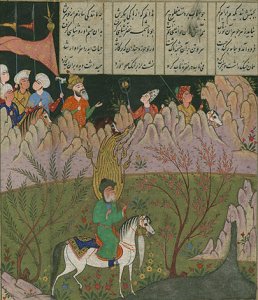 In the meantime the true queen escapes, and is cared for by a farmer; a son is born, who is called Mahbub, and the ‘Darling of the World’. Later he goes alone to court, and becomes the victor in athletic contests, particularly as an archer. The people recognise his likeness to the late king.