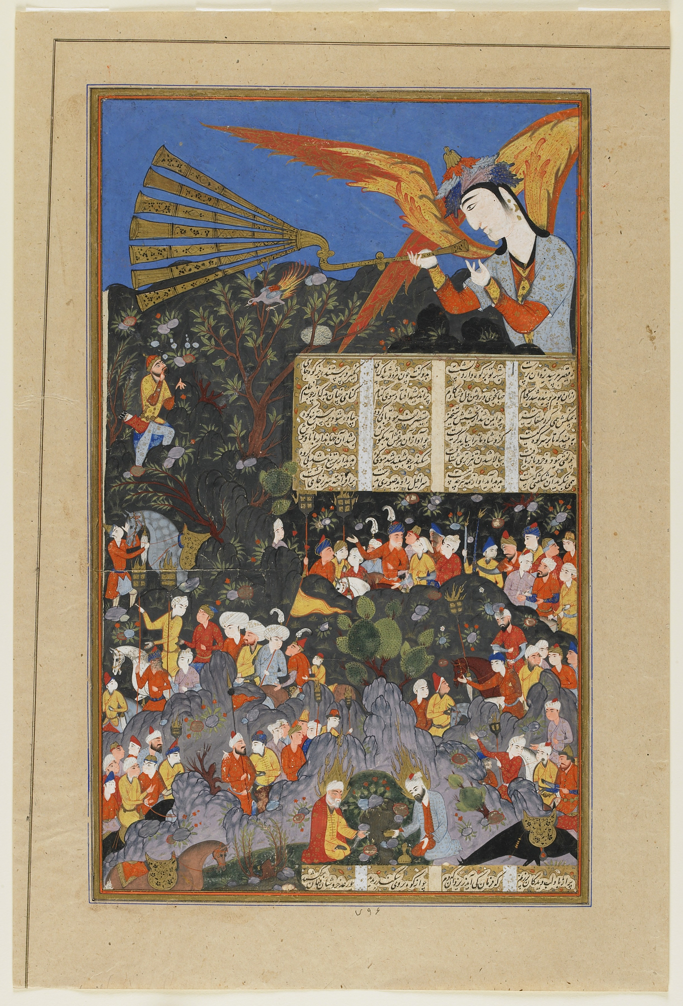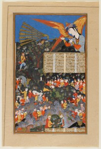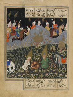 Folio from a Shahnama Book of kings by Firdawsi 1020 recto Iskandar encounters the Angel Israfel verso text Iskandar crosses the Land of Darkness removes the ruby Iskandar constructs a wall to defeat Gog and Magog