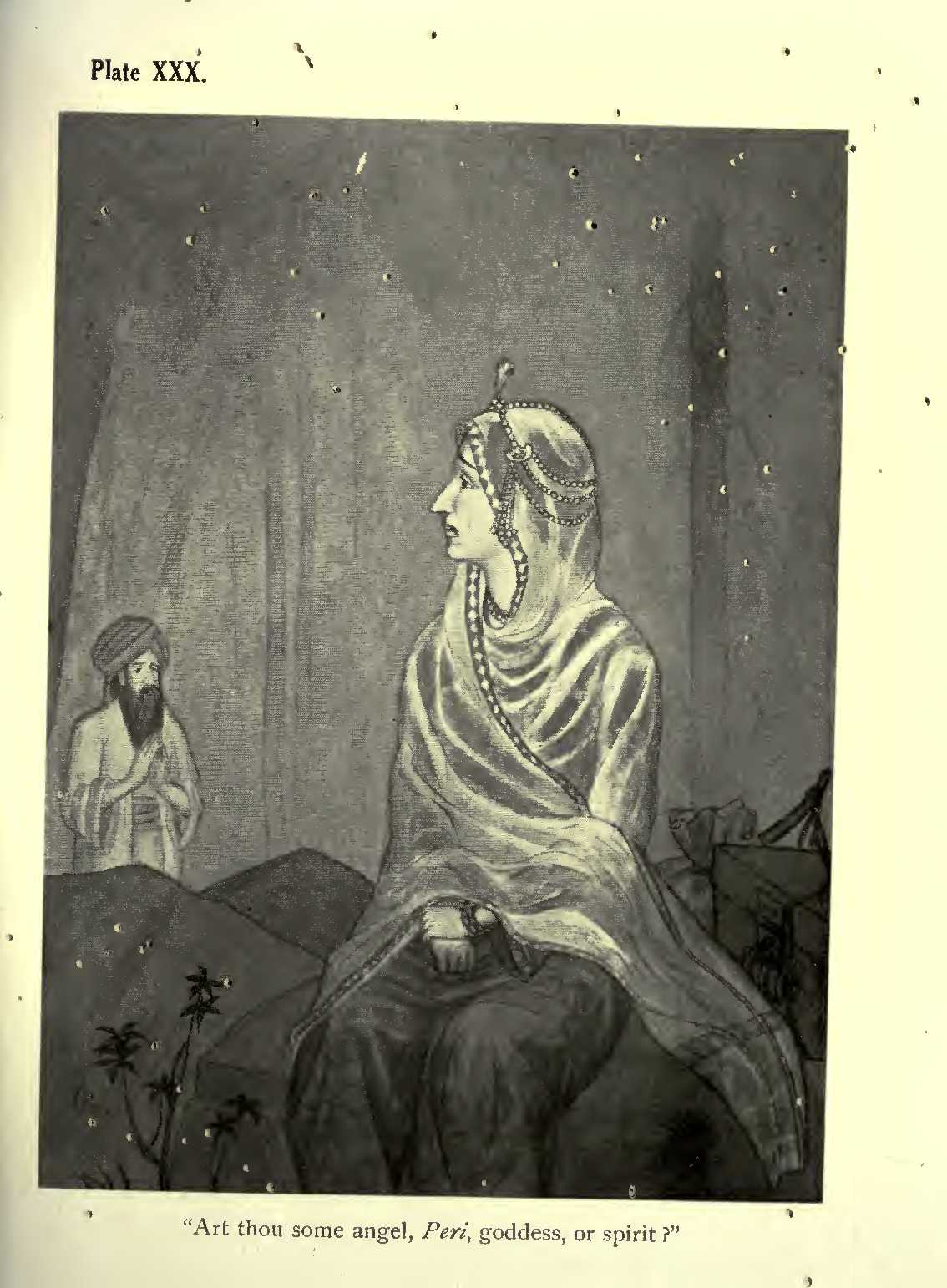 Then from the floor of the palace there rises up the form of the faqir previously mentioned, and now clad in garments of light. The pans bow down to him, and ask ‘Khwaja Khizr, has the hour come?’ The faqir, who is indeed none but the immortal Khwaja Khizr, explains to Mahbub that the corpse is his father’s, who had been murdered by the usurper Kassab; Mahbub’s ancestors have all been magi;[11] all have been buried in the under-water palace, but Mahbub’s father has remained unburied, for none had performed his funeral rites;
