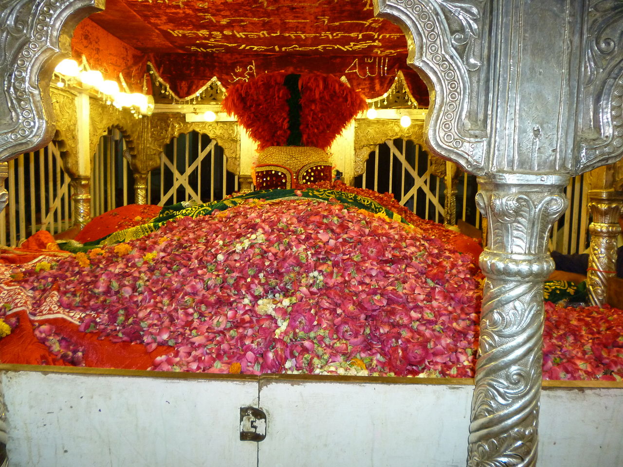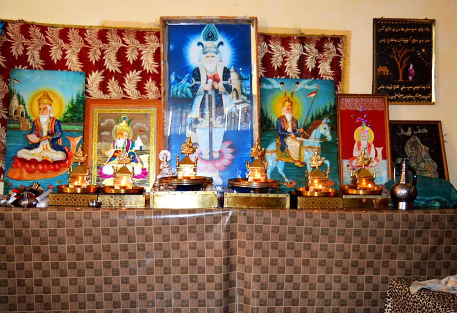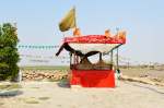 The main sanctum is bordered by small walls and adorned with colourful paper streamers. There is a raised platform in the middle, which is believed to be Khwaja Khizr’s takiya or gaddi (throne or seat), and is embellished with large alams (flags or signs), which are a testament to Shia influence nowadays.