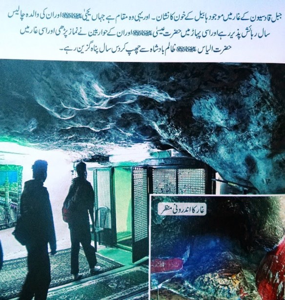 On another flank of the same mountain is yet another cave, which has come down in local legend as being the cave of the Seven Sleepers, mentioned in early Christian sources, as well as in the Quran,] where they are known as the Aṣḥāb al-Kahf (Companions of the Cave). This is rather dubious, however, and it is only one of many caves in this part of the world that share the claim. A madrassah has been built over the cave, but pilgrims are still granted access.