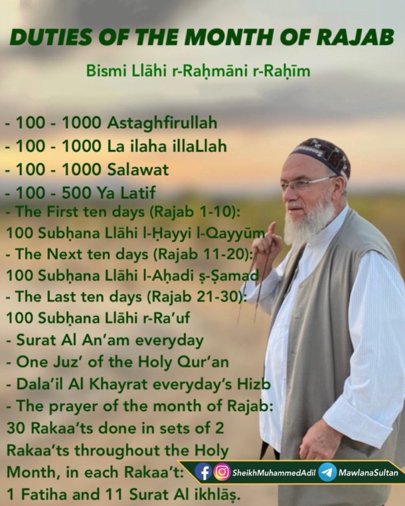 AlhamduliLlah in this month, insha’Allah after two days, there is a blessed night. And it happens alhamduliLlah that we will be in Egypt insha’Allah: it is Laylatul Ragha’ib. This is a blessed night. Whoever can – we are now traveling, if we weren’t traveling we would have fasted on Thursday. And Thursday night will be the night of [entry] of the month of Rajab insha’Allah. In our country, the calendar is set according to calculations. They say it [the first of Rajab] is on Friday. Insha’Allah it is Friday, according to the moon.