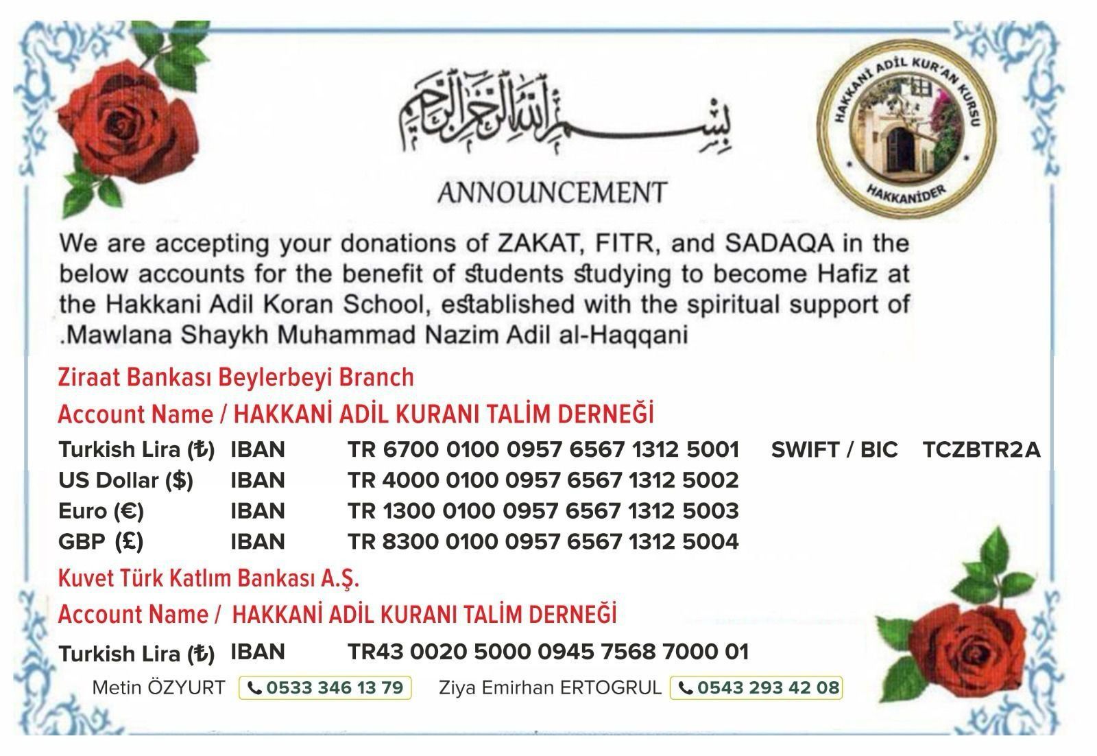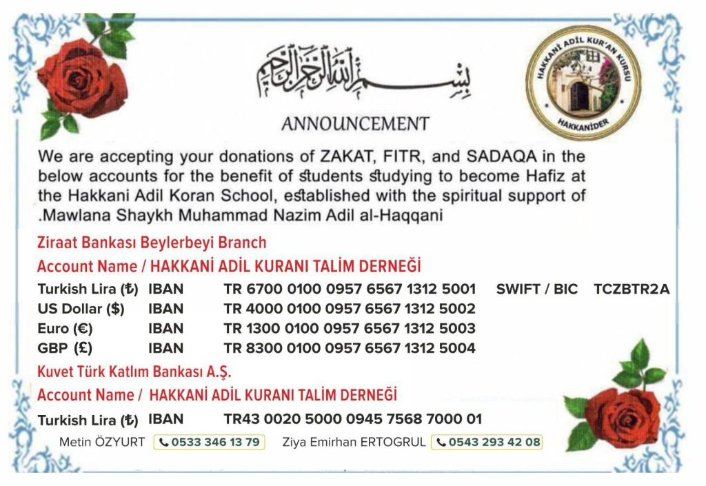 Wa ṣ-Salātu wa s-Salāmu ‘alá Rasūlinā Muḥammadin Sayyidi l-Awwalīna wa l-Akhirīn. Madad yā RasūlAllāh, Madad yā Sādāti Aṣḥābi Rasūlillāh, Madad yā Mashāyikhinā, Dastūr Mawlana Sheikh Abdullāh al-Fā’iz ad-Dāghistāni, Sheikh Muḥammad Nāẓim al-Ḥaqqānī. Madad.