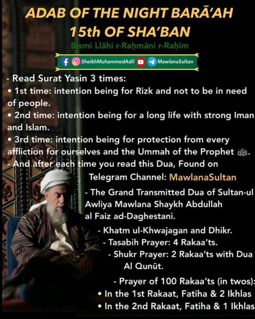 ✅ Saturday 24th February 2024 — Laylatul Barah (Mid-Sha’ban) in St Anns Dergah, London at 8pm