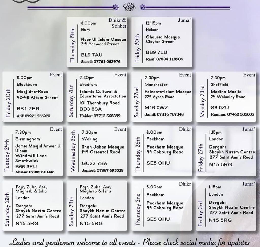 ● 🚩 Official UK Tour 2023 Itinerary – Mawlana Shaykh Sayyid Muhammad Adil ق 🚩