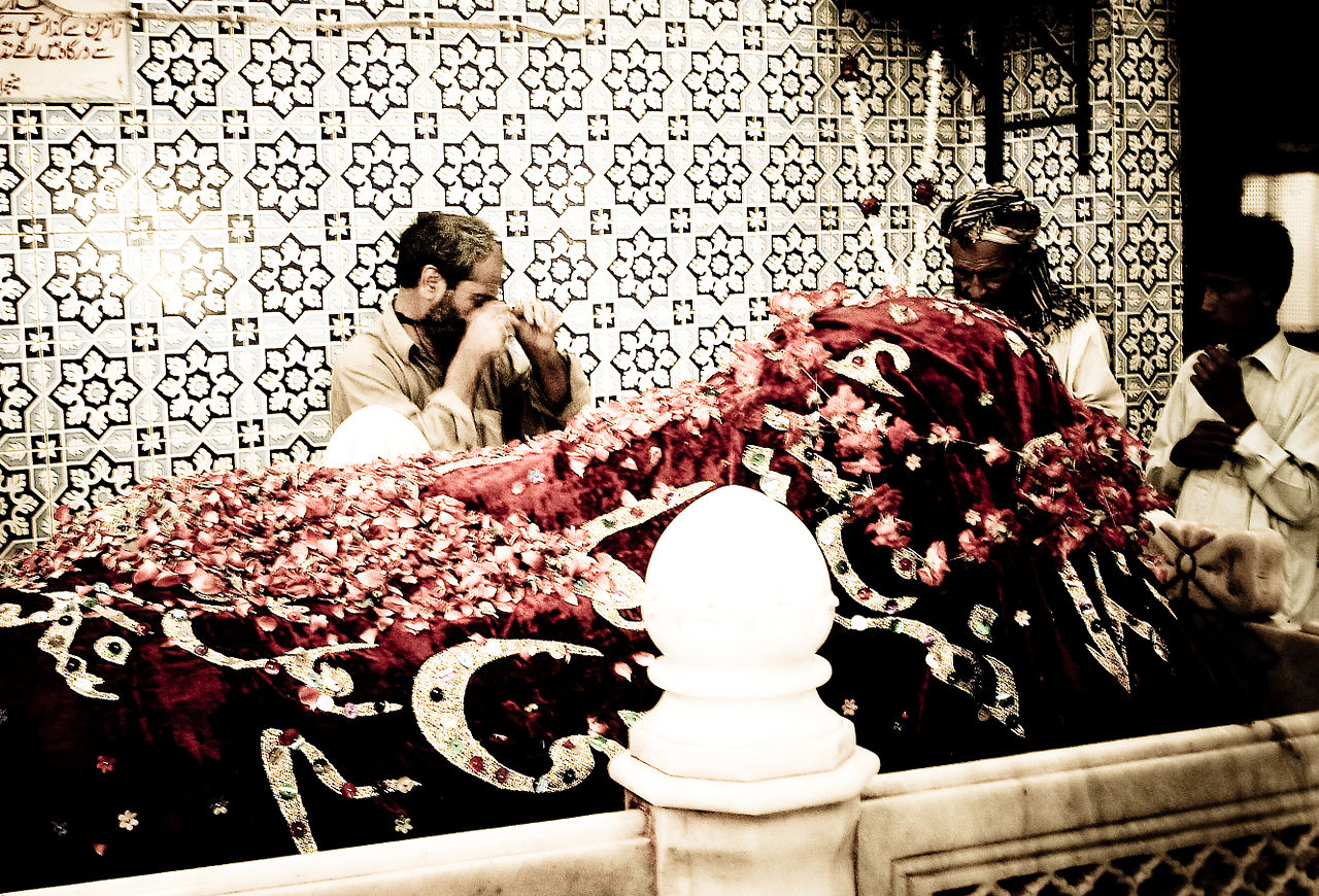 Syed Shah Hussain[1] (1177 – 1274),[1] popularly known as Lal Shahbaz Qalandar (Sindhi: لعل شھباز قلندر), was a scholar, Sufi saint and religious-poet of present-day Pakistan and Afghanistan.[3][1] He is revered and respected by both Muslims and Hindus in the region since he preached religious tolerance between the faiths.[1][2] He was called Lal (“ruby-colored”) after his usual red attire and “Shahbaz” to denote a noble and divine spirit and “Qalandar” as he was a wandering holy man.[1] The spiritual song “Dama Dam Mast Qalandar“, based on an original version from the 13th century, glorifies the saint and his teachings and in recent decades hase been widely popular within the Indian subcontinent.