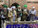Mawlana Shaykh Muhammad Adil (Q.S) presenting a a covering for the maqam of the great sufi saint and poet Baba Bulleh Shah (R) in Kasoor,