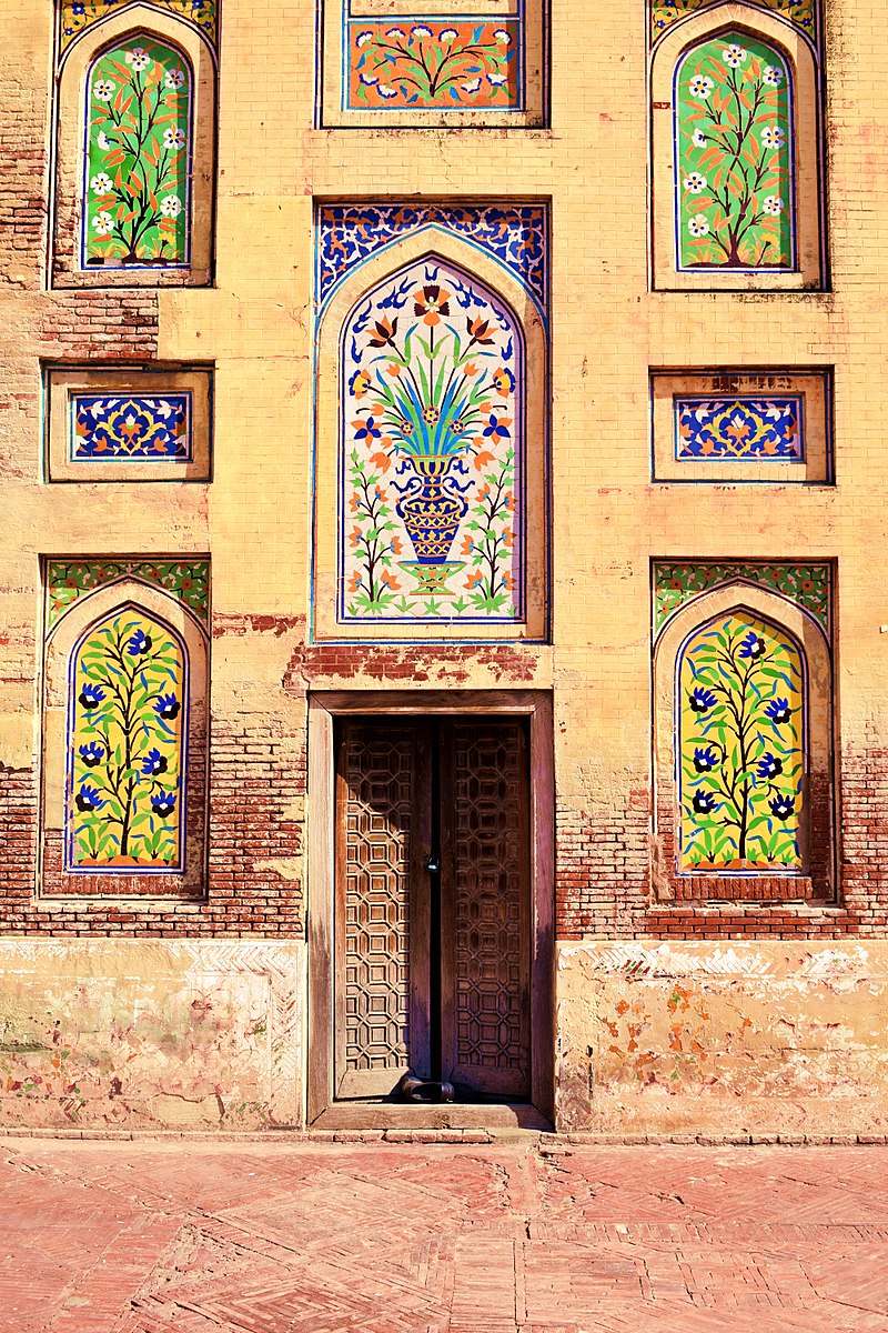 Considered to be the most ornately decorated Mughal-era mosque,[1] Wazir Khan Mosque is renowned for its intricate faience tile work known as kashi-kari, as well as its interior surfaces that are almost entirely embellished with elaborate Mughal-era frescoes. The mosque has been under extensive restoration since 2009 under the direction of the Aga Khan Trust for Culture and the Government of Punjab,[3] with contributions from the governments of Germany, Norway, and the United States.[4]
