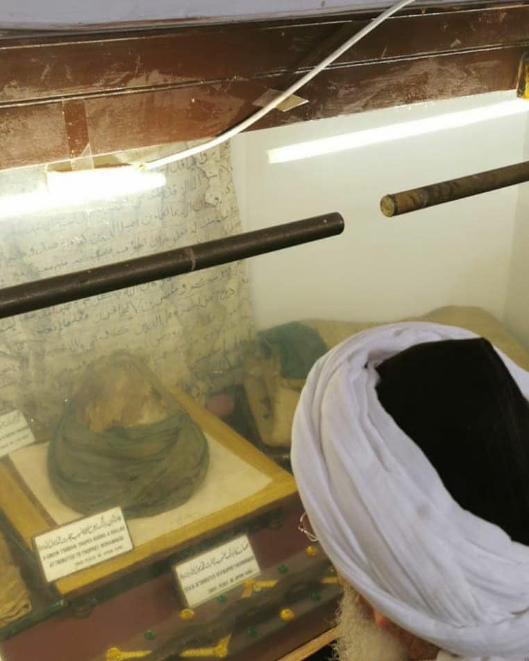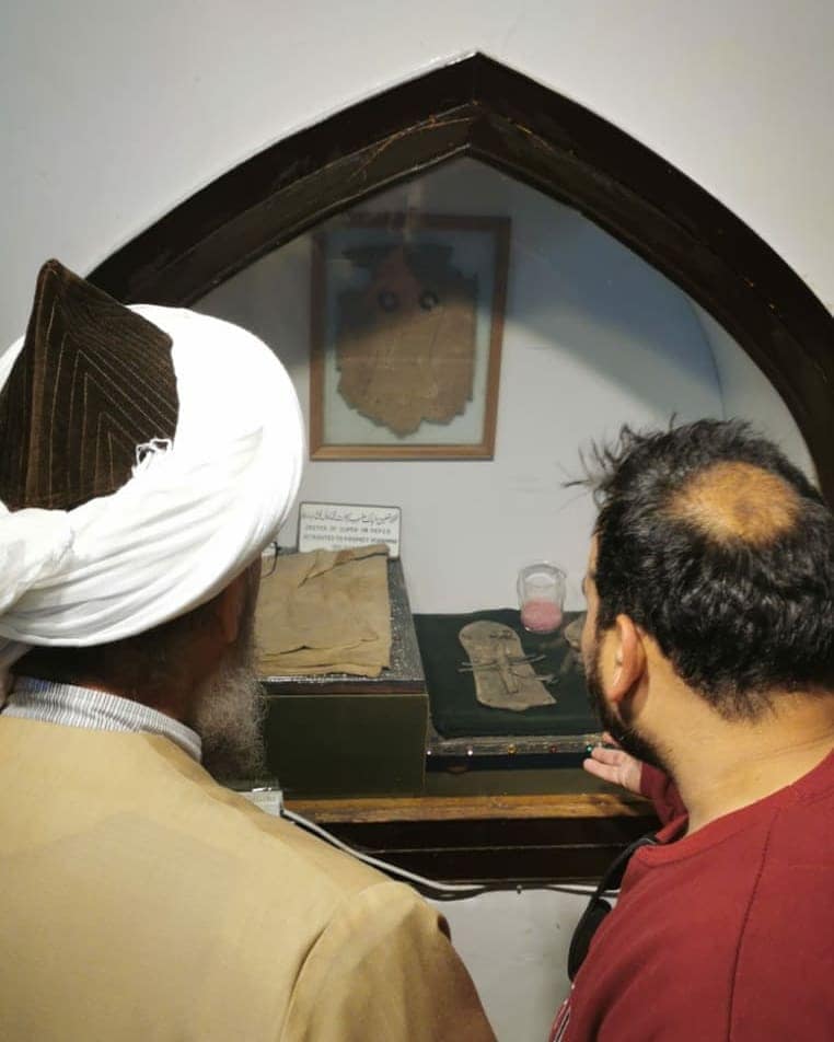 Mawlana Shaykh Muhammad Adil ق at the Badshahi Mosque being show the holy relics of Rasul’Allah ﷺ in Lahore, Pakistan.
