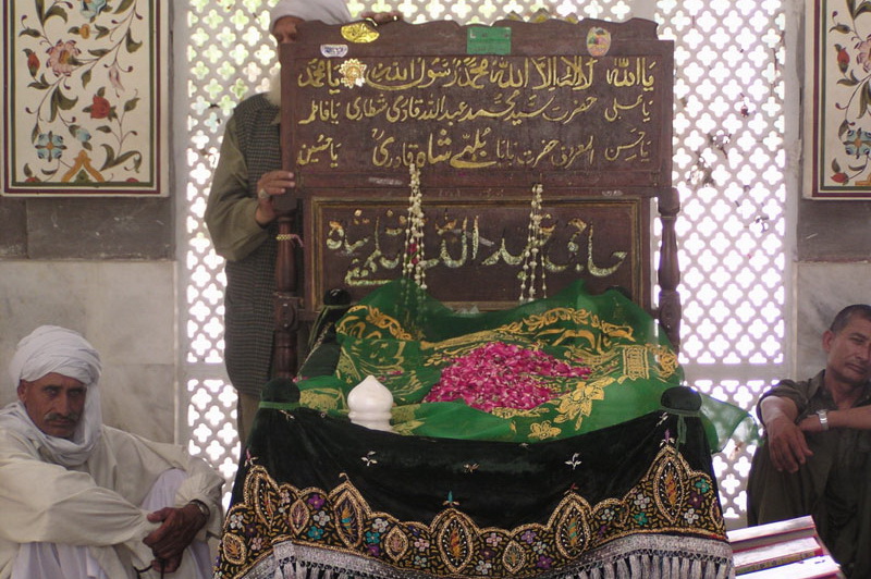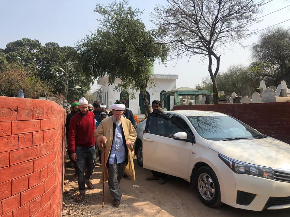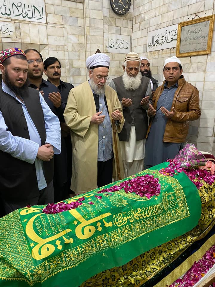 Mawlana Shaykh Muhammad Adil ق as they pay their respects at the maqam of Mawlana Shaykh Tahir Bandgi ق the Khalifa of Grandshaykh Imam-e-Rabbani Ahmad al-Faruqi al-Sirhindi ق in Lahore,