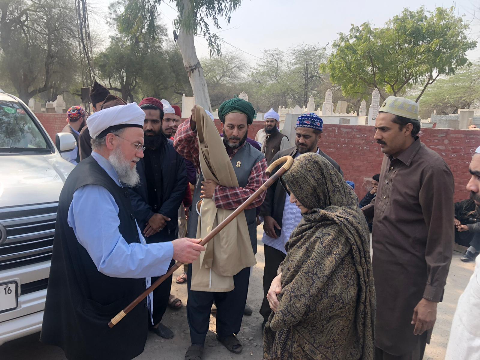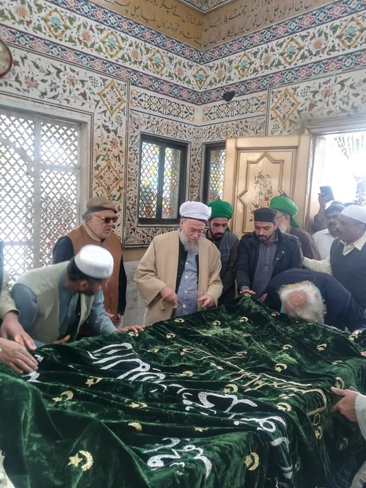 Mawlana Shaykh Muhammad Adil (Q.S) presenting a a covering for the maqam of the great sufi saint and poet Baba Bulleh Shah (R) in Kasoor,