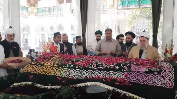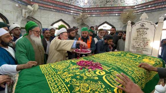 Mawlana Shaykh Muhammad Adil (Q.S) arriving at the maqam of Peer Shah Ghazi (R) and Mian Muhammad Baksh (R) in Khari Sharif, Mirpur
