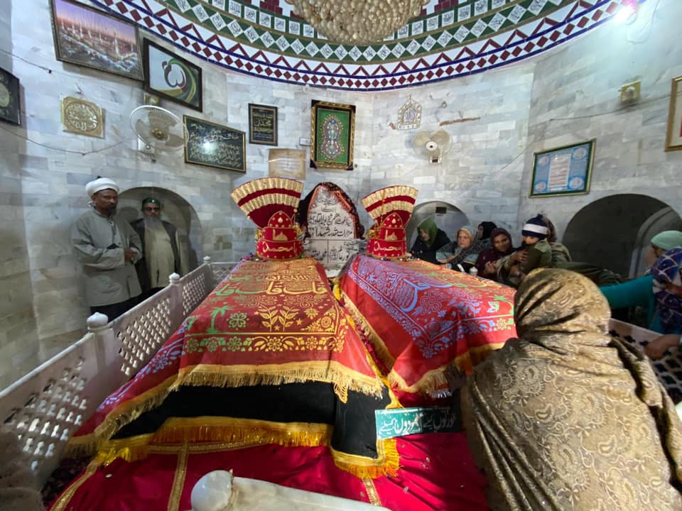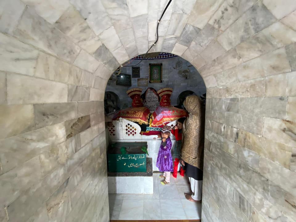Mawlana Shaykh Muhammad Adil ق as they pay their respects at the maqam of Hazrat Yaqub ق & Hazrat Ishaaq ق in Kahaar, Pakistan.