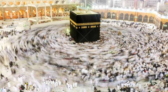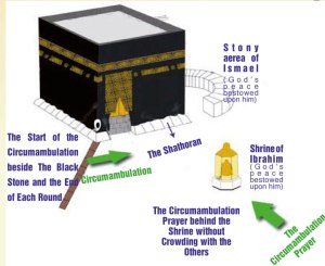 They circumambulate the heart in the same way the pilgrims circumambulate the Ka’ba, so one’s sensible attachments turn around one’s body in the same way the angels move about the encompassing Throne. The ambulants of the Ka’ba are viewed to correspond to the secrets of the heart, because both share the idea of “heart-ness” (al-qalbiyya); whereas the ambulants of the body correspond to the ambulants of the Throne, because both share the idea of “encompassed-ness” (al-ihatiyya). And just as the composed body is of a lesser status than the simple heart, so likewise is the encompassing Throne in relation to the Ka’ba.