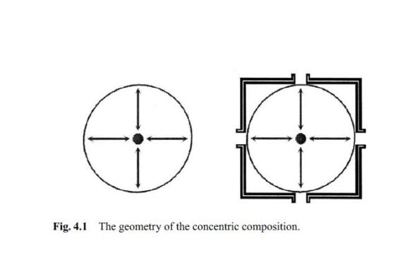 From an analogical perspective, one may observe that the concentric composition is the basis from which the linear composition derives, just as the point is thought of as the prin-ciple from which the line extends and stillness (sukun) as the state from which motion (haraka) proceeds.