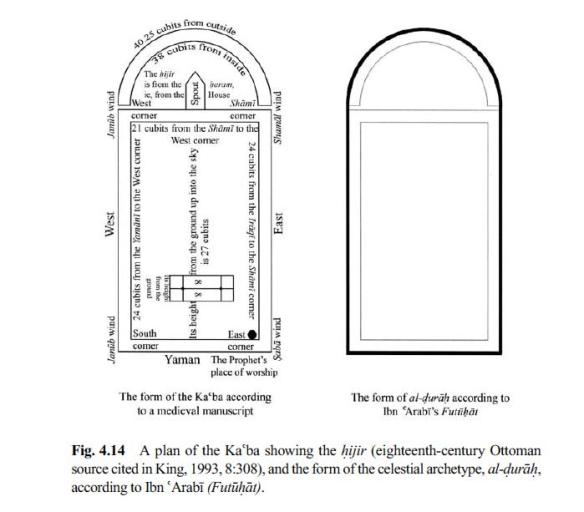 Concerning the relationship between the concealed triplicity and revealed quadrature, Ibn ‘Arabï says that it was the divine wisdom that prompted the Umayyad caliph to order his governor al-Hajjâj to pull down the Ka’ba and return it to the current quadrant form that does not conform to the original divine model.