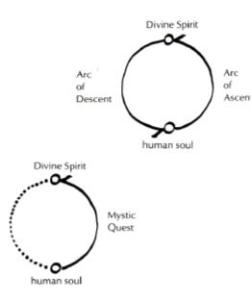 The postures of the prayer together with their associated tendencies are seen to correspond to the threefold origin of humanity. Through the prostrating posture and its downward tendency humans seek the origin of their body, water and earth; through the standing posture and its ascending tendency they seek the origin of their spirit, God; and through his bowing posture and its horizontal tendency they seek the origin of their imaginative and mental faculties, the isthmus (al-barzakh).
