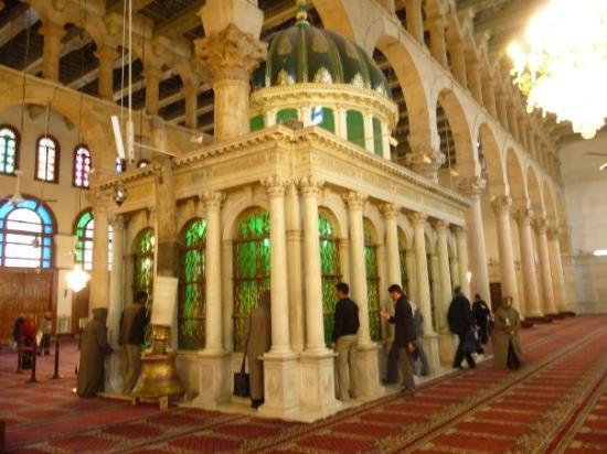 The tomb of the prophet Yahya inside the prayer hall of the great Umayyad mosque of Damascus.