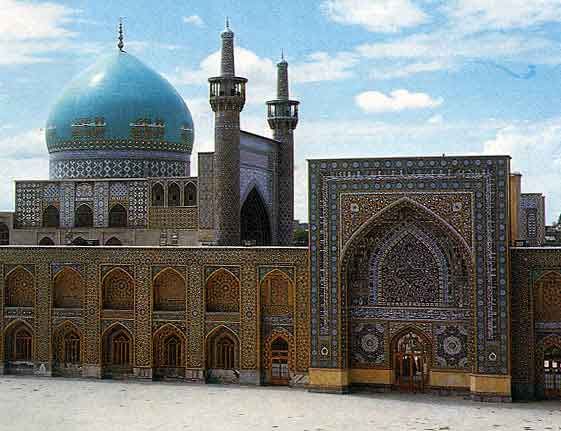 For example, the formal composition of a dome on a geometrically regular base or a courtyard with a central fountain and four vaulted iwans, doorways, and other symmetrical elements are recurrent in a variety of building types.