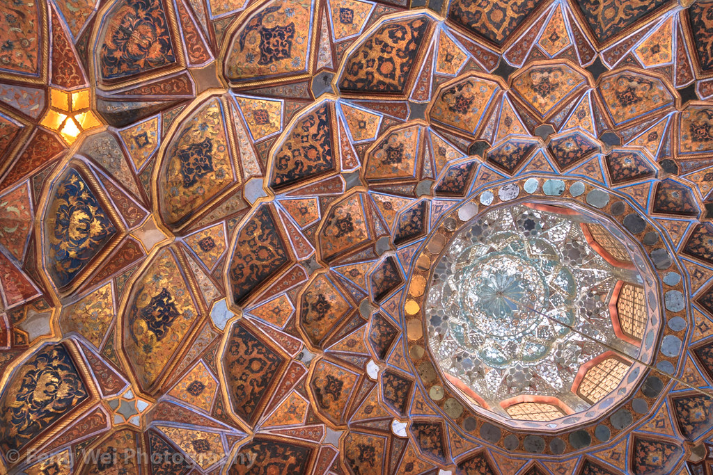 Some gardens with a central domed pavilion, such as Hasht Bihesht in Isfahan, show a sophisticated synthesis of the centralized enclosed space and centralized open courtyard.
