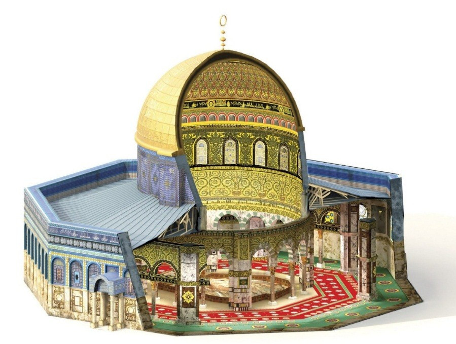 The architectural composition of the Islamic mausoleum, described as “the posterity of the Dome of the Rock,” follows this model.