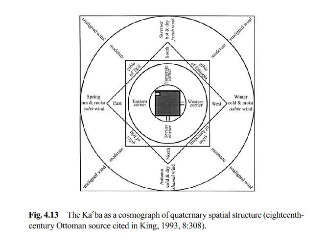 A simple examination of a range of surviving premodern Islamic buildings reveals a discernible preference for geometrically ordered spaces with isotropic spatial qualities. There was a tendency to organize spaces symmetrically around a central point and to identify, in one form or another, the cross of directions, regardless of whether or not the cross is aligned with the cardinal points.