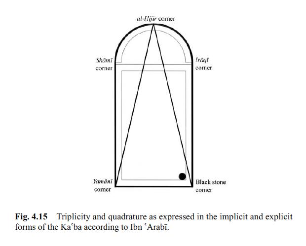 Concerning the relationship between the concealed triplicity and revealed quadrature, Ibn ‘Arabï says that it was the divine wisdom that prompted the Umayyad caliph to order his governor al-Hajjâj to pull down the Ka’ba and return it to the current quadrant form that does not conform to the original divine model.