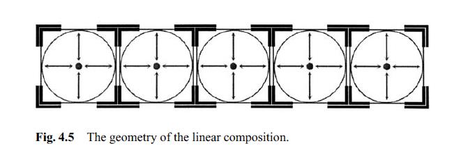 Whereas the static unfolding of space in the concentric composition reveals one center in a pictorially unified space, the dynamic nature of the linear composition manifests a multitude of centers, all of which are of more or less equal importance.