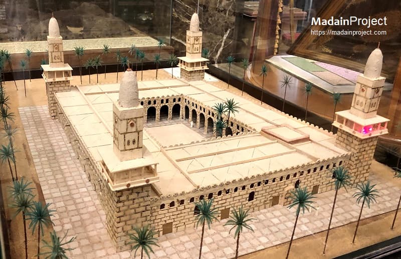 The Prophet’s house-mosque was in the shape of a square measuring one hundred or seventy cubits a side. It consisted of two parts: a simple walled court-yard and a simple shelter built with a flat roof held up by palm trunks used as pil-lars. This was first built along the northern side that faces Jerusalem, and a few months later with the divine injunction to change the qibla it was dismantled and reerected along the southern side, which faces Mecca. This shelter formed the prayer hall and opened onto the courtyard, which formed an extension to the cov-ered area and an integral part of the mosque as a whole. The open courtyard was the predominant part of the mosque and was provided with three doors, one on each of the eastern, western, and northern sides of the square.