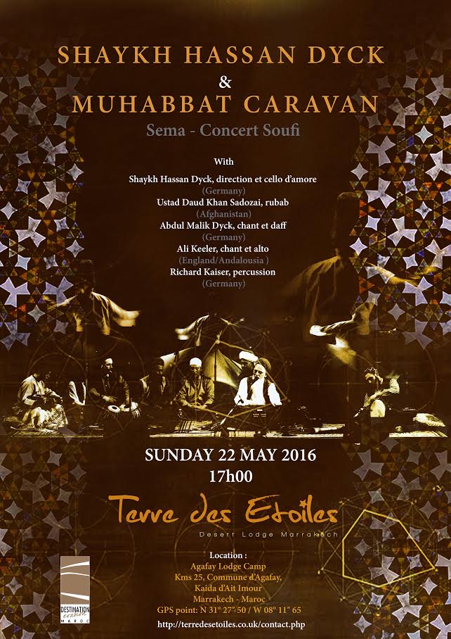 SEMA , Concert Soufi – Shaykh Hassan Dyck et Muhabbat Caravan- SUNDAY 22 MAY 2016 5PM at TERRE DES ETOILES