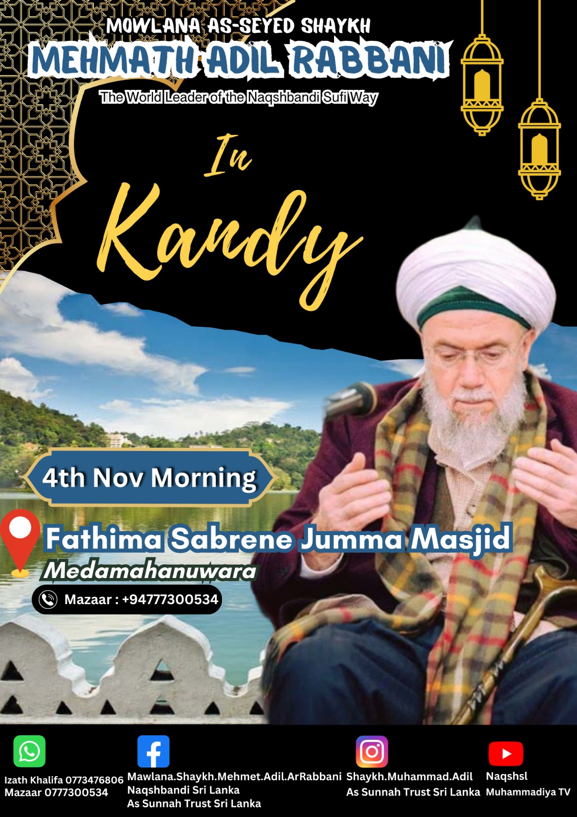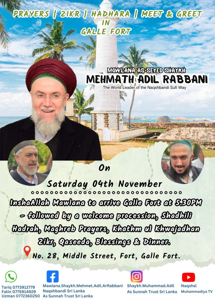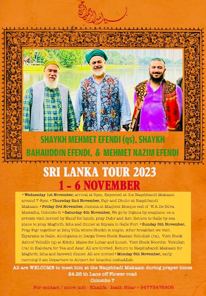 •Nov 3 – Friday Meet at Makaam for Fajr prayer and Ziyarah and Jumma at Makbool Masjid at W.A.De Silva Mawatha Colombo 6.