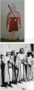 Photograph of two Qalandar dervishes with stones Drawing of Kazak Abdalon their belts.