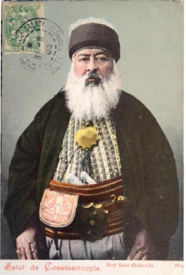 As far as I know, there is almost no mention of the teslim tas in historical sources prior to the 18th century, neither in the hagiography of Haji Bektash dating from the l6th century nor in the other hagiographies of the same period dedicated to Bektashis saints. The love Bektashi paraphemalia dedicated to the figure twelve is the headgear which was adopted with many Shii ideas from the Kizilbas and the Safavid states. In the first half of 16th century, for example, the Sufi writer Vahidi wrote that the Bektashi wear twelve-gored conical caps of white felt ornamented with a button made of “Seyyid Ghazi stone” at the top. We have no more details about this “Seyyid Gházi stone” which obviously refers to the famous figure of Seyyid Battal Ghazi, an Arab warrior who had fought the Byzantine Empire in the 8th century and was therefore regarded as a prestigious Bektashi saint. But Vahidï didn’t mention any twelve-sided stone.