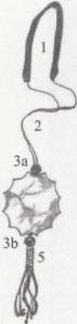 It has a hole from its top to the bottom through which a string is introduced; from the top of the stone, this string is thin and reaches around the neck of the dervish; at the bottom of the stone, the string is thick and ends in some big circular knots (Plates 13.1, 13.2).