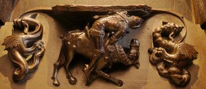 Many centuries after the supposed existence of the Roman St George a new element was grafted onto the myth that turned him into a dragon-slayer. This came about because of a story in Jacobus de Voragine’s The Golden Legend, a compendium of the lives of the saints. Destined to become one of the best-selling books of all time it had a massive influence on the popular psyche, for in those days it was believed that such writings were the results of historical scholarship and not propaganda or mass mind-control through the media, as we might perhaps see it today.