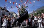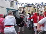 To this day one can still sense the sheer vivacity of such proceedings, and the genuine spirit of celebration at the rebirth of the spring god of fertility. The ‘Oss’, it has to be said, looks far more like a dragon than a horse, and of course St George, as the spirit of renewal, is a central figure in this and many other such celebrations. At Padstow he ritually ‘dies’ accompanied by an emotionally-charged and mournful song before suddenly the Oss suddenly leaps up, reborn at the same moment as St George.