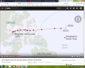 Despite the north pole being a fixed location in the Arctic circle, the Magnetic North Pole is a wandering location which changes year on year. The Magnetic North Pole describes the point where the Earth’s natural magnetic field points inwards and down to the ground. For years, the magnetic pole’s location was determined to lie not too far off from the Geographic North Pole. Scientists have, however, noticed in recent years an increased rate at which the pole appears to shift from location to location. Here more info about – Is Earths magnetic field in the process of reversing? and St George: The Art of Dragon Taming